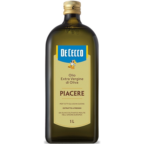 De Cecco Piacere — преміальна олія з добірних солодких олив віджата холодним способом. Вона має виразний аромат дозрілих олив з легкими фруктовими і мигдалевими нотами. У смаку — м’якість з елегантною гірчинкою та делікатною горіховою післясмакою. Ідеальна для салатів легких соусів та рибних страв.
