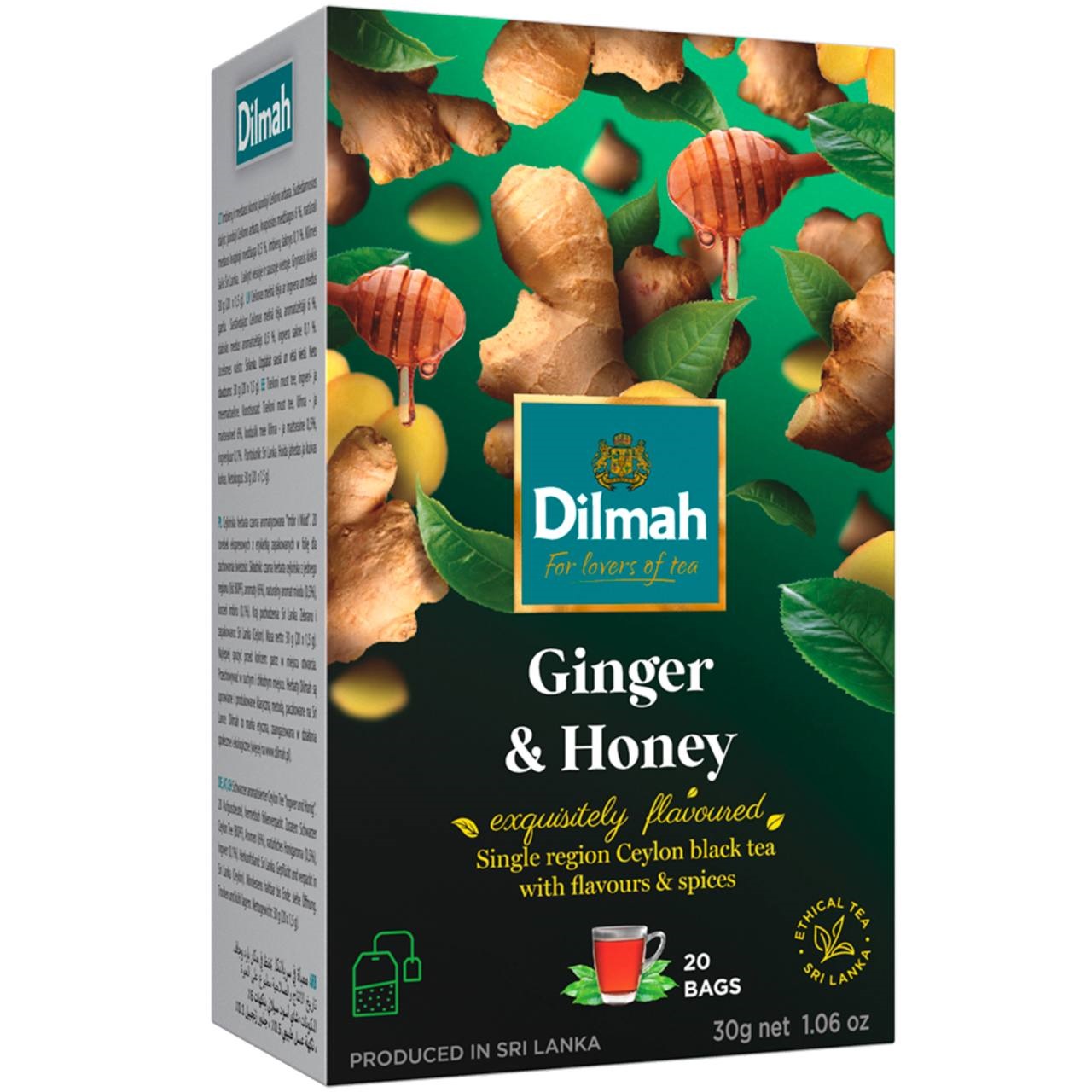 Dilmah Ginger & Honey — це чорний цейлонський чай виготовлений з добірного листа зібраного вручну на високогірних плантаціях Шрі-Ланки. Поєднання насиченого смаку чорного чаю з ароматом імбиру та меду створює гармонійний смаковий профіль. Підходить для приготування гарячих та холодних напоїв.