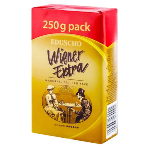 Eduscho Wiener Extra — мелена кава натхненна традиційним віденським обсмаженням. Бленд складається з добірних зерен Арабіки та Робусти які надають напою збалансованого смаку з легкою кислинкою та делікатною гірчинкою. Ідеально підходить для щоденного споживання в крапельній кавоварці турці або френч-пресі.