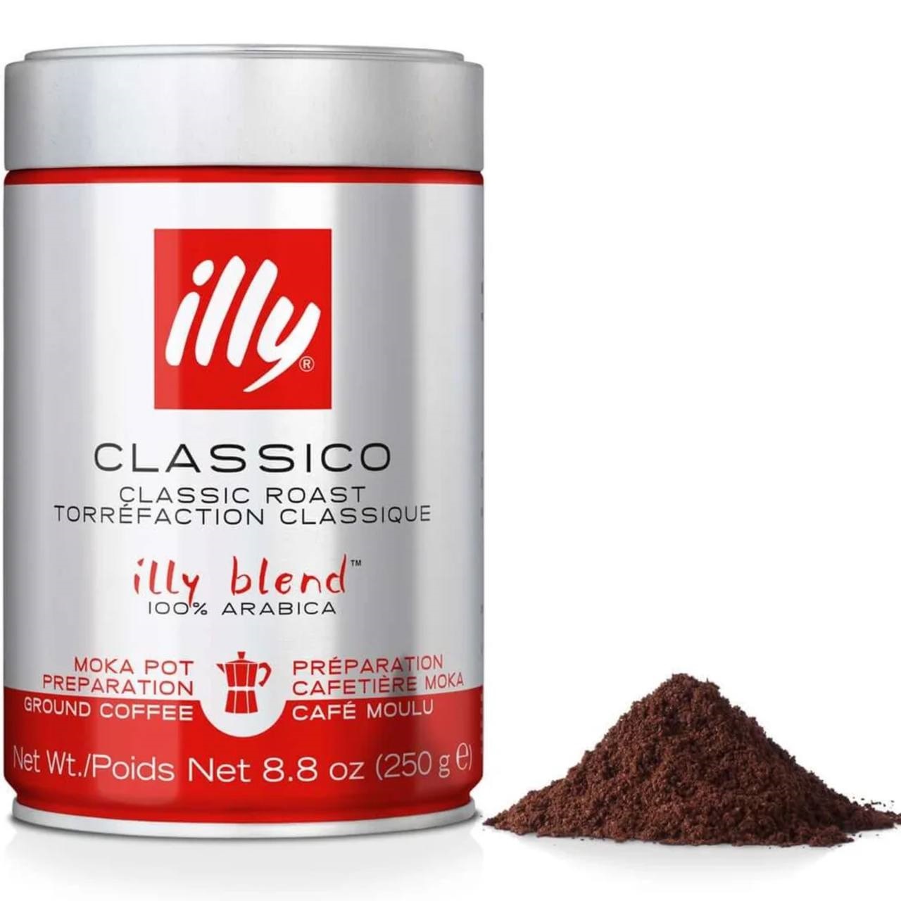 Illy Classico Moka — це кава середнього обсмаження з м’яким ароматом та приємною солодкістю. Завдяки фірмовій технології пресованої упаковки аромат зберігається до 24 місяців. Підходить для приготування в гейзерній кавоварці (moka pot) а також у турці френч-пресі чи крапельній кавоварці.