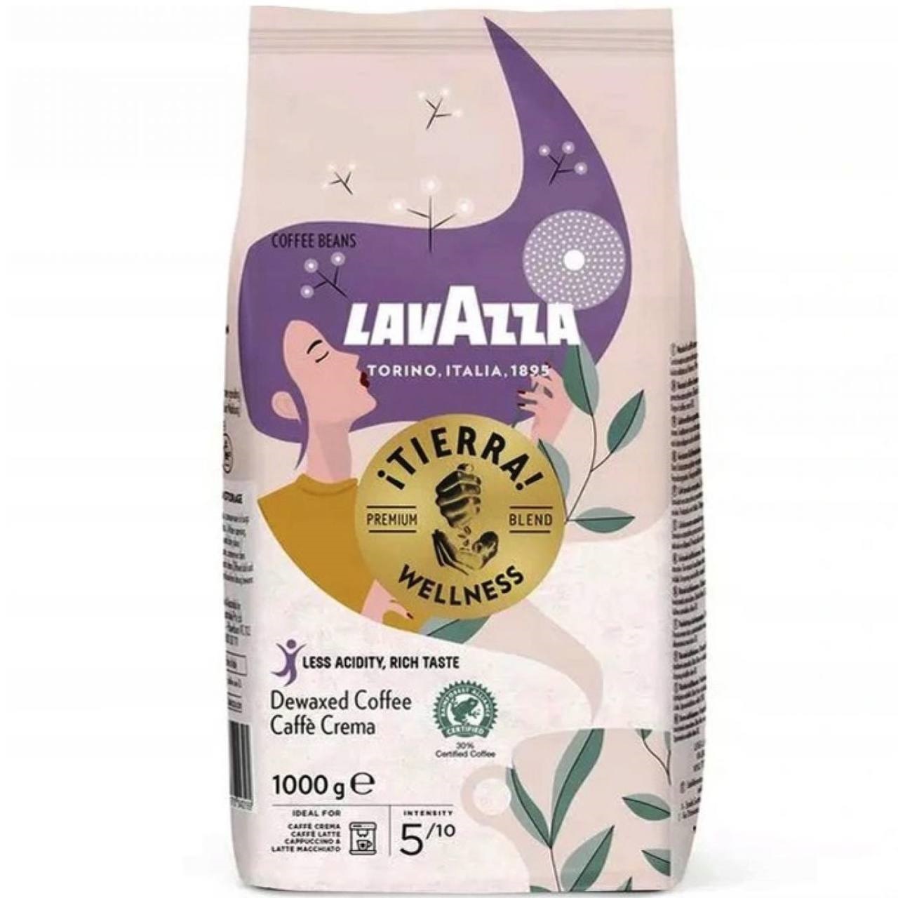 Lavazza ¡Tierra! Wellness — це кава в зернах створена для тих хто шукає гармонію смаку та добробуту. Завдяки спеціальному процесу обробки (dewaxing) який зменшує природний восковий шар на зернах кава має знижену кислотність зберігаючи при цьому повноцінний аромат і смак. Цей процес також сприяє зменшенню вмісту кофеїну до 80% порівняно зі звичайною кавою. Суміш добірних зерен Арабіки та Робусти з Центральної та Південної Америки забезпечує насичений смак з нотками шоколаду та карамелі. Середній ступінь обсмаження надає напою збалансованості та м’якості.