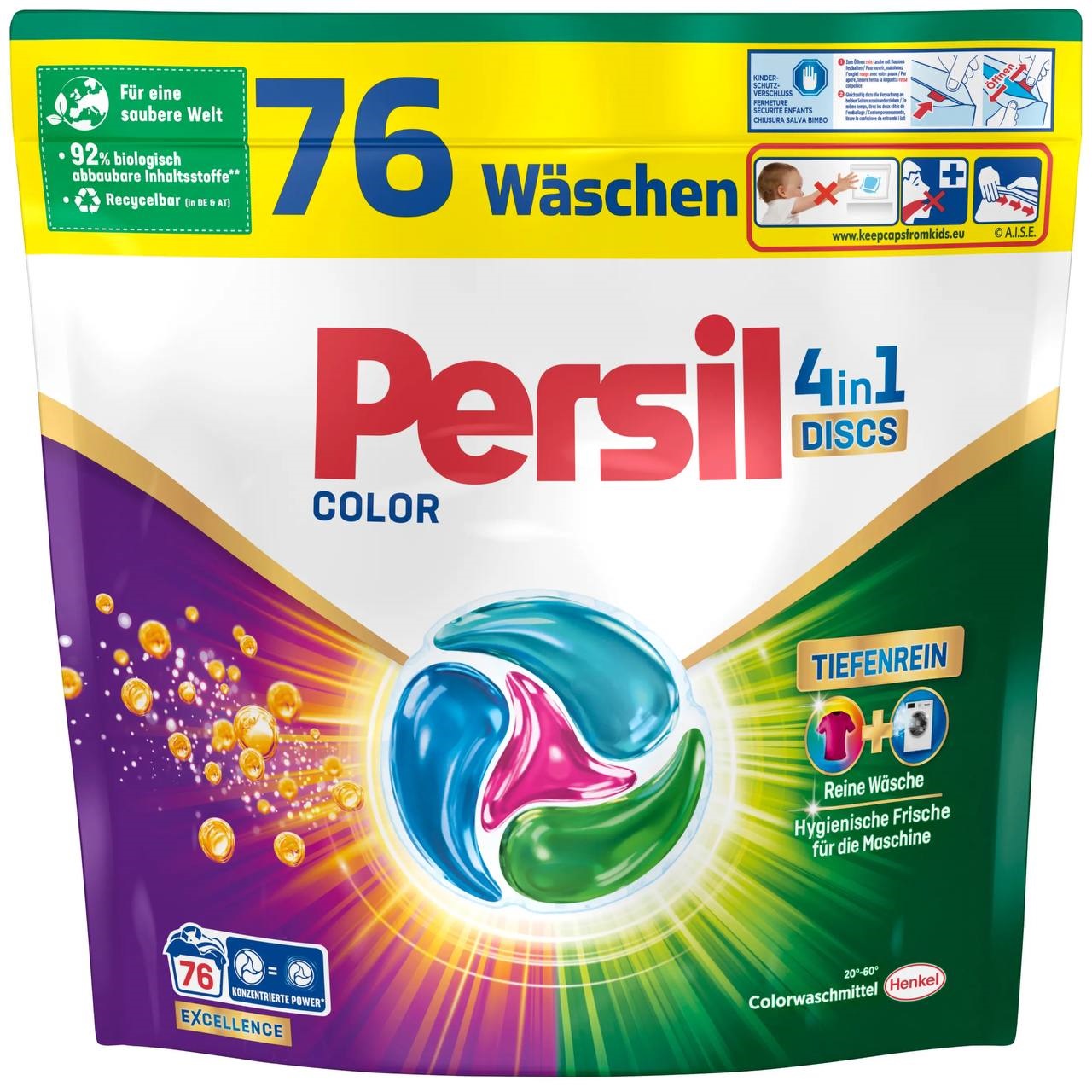 Persil Color 4in1 — інноваційні капсули, які забезпечують глибоке очищення, видалення плям, збереження кольору та довготривалу свіжість. Завдяки зручній формі й попередньо дозованим порціям вони полегшують процес прання. Працюють ефективно навіть при низьких температурах. Підходять для всіх типів кольорових тканин.