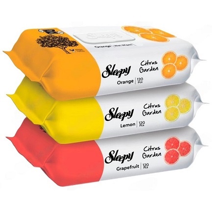 Sleepy Citrus Garden — м’які серветки, просочені делікатним очищувальним лосьйоном із яскравим ароматом цитрусових фруктів. Підходять для рук, обличчя й тіла, не містять спирту, не викликають подразнень і залишають легке відчуття чистоти без липкості. Велика упаковка на 120 шт зручна для дому, офісу або подорожей.