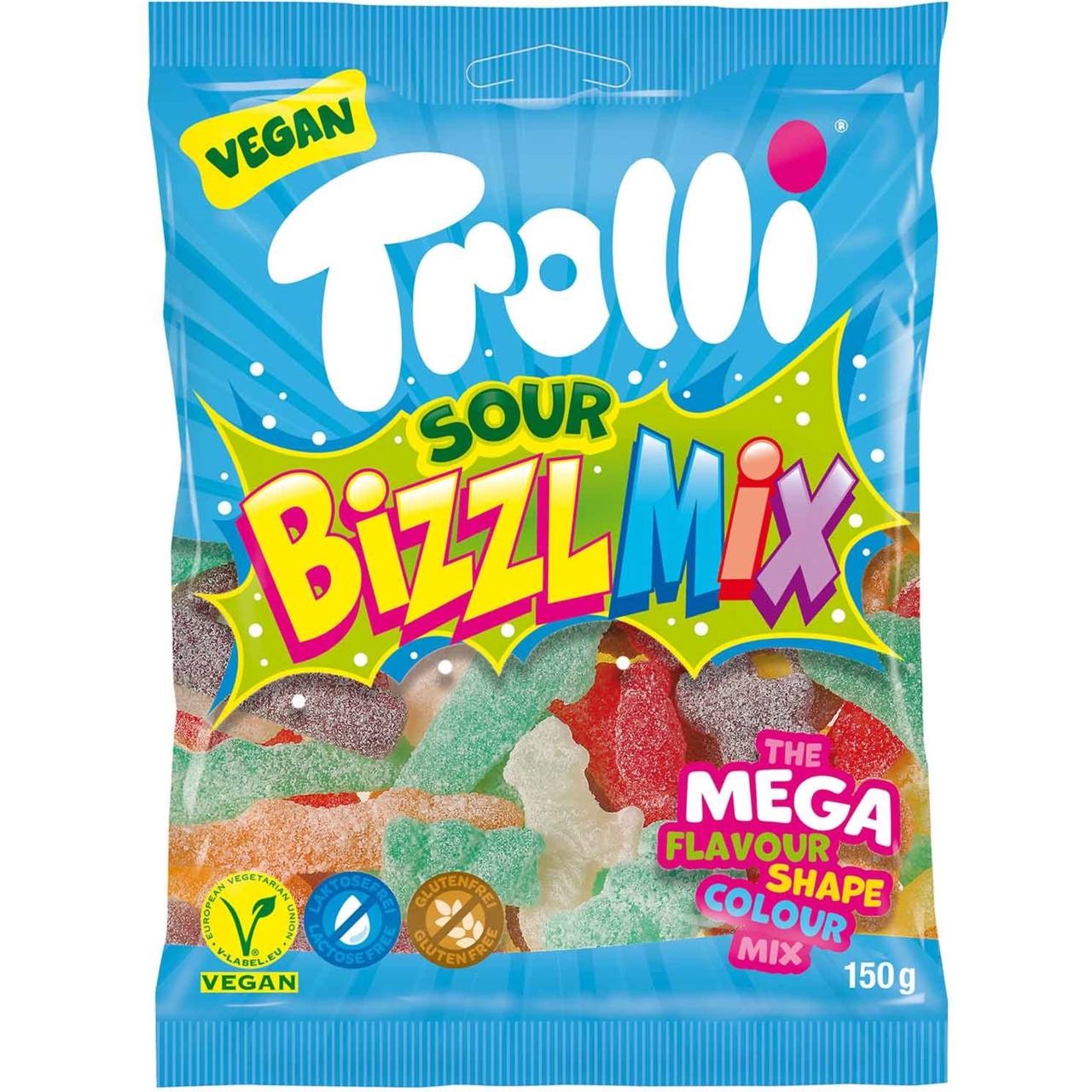 Trolli Sour Bizzlmix — це яскравий асорті кислих желейних шматочків з інтенсивною фруктовою і кислотною палітрою смаків. Різноманітність форм — кульки смужки фігурки — і насичений колір створюють справжню смакову пригоду. Цей мікс ідеально підійде для вечірок кінопереглядів або коли хочеться прокинути свої смакові рецептори.