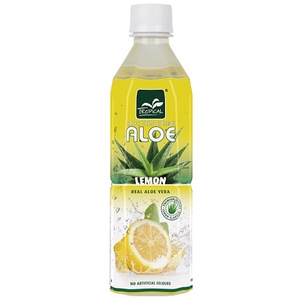 Tropical Aloe Vera Lemon містить 20 % натуральної м’якоті алое вера підсолоджений тростинним цукром підсилений лимонним соком (1 %) і медом. Має освіжаючий цитрусовий аромат природну текстуру із шматочками алое та поживну цінність. Продукт без барвників і консервантів вироблений для щоденного втамування спраги.